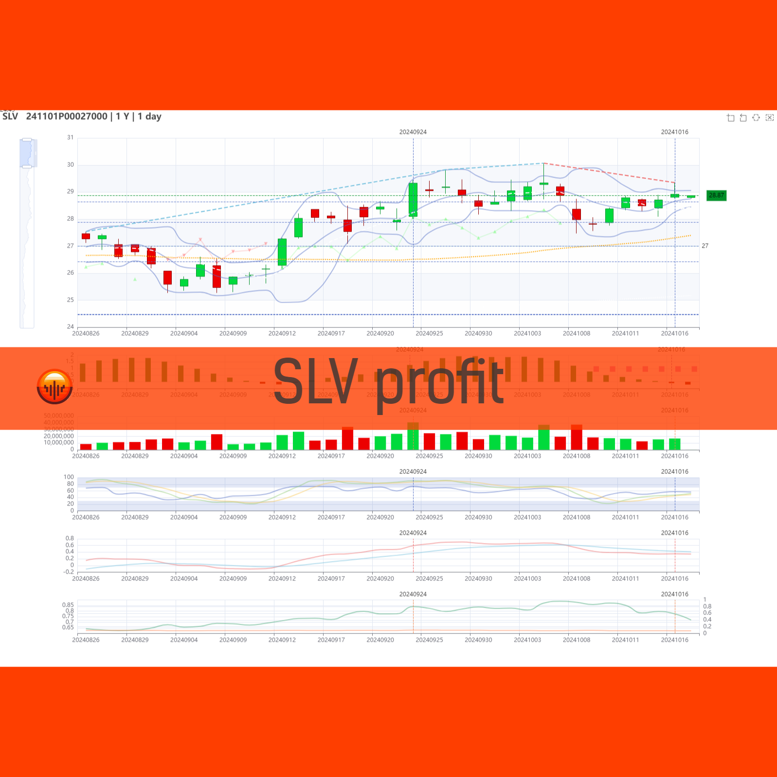 Today, I closed out my position on the SLV November 2024 put option with a strike price of $27.00. I initially sold this option on September 24th at a price of $0.37. I repurchased the option today at $0.14, resulting in a profit of $0.23 per share.